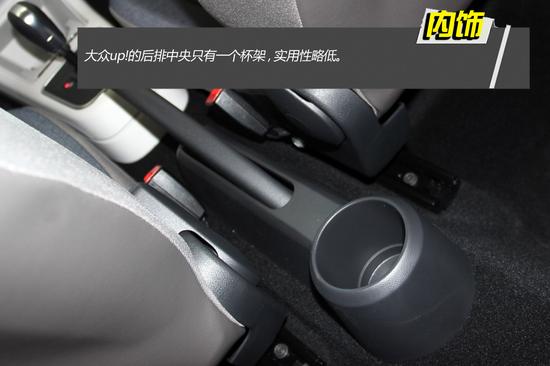 大众up!的后排中央只有一个杯架,实用性略低。后排车窗也仅能打开一条缝隙,类似比亚迪F0的这一设计略显廉价。