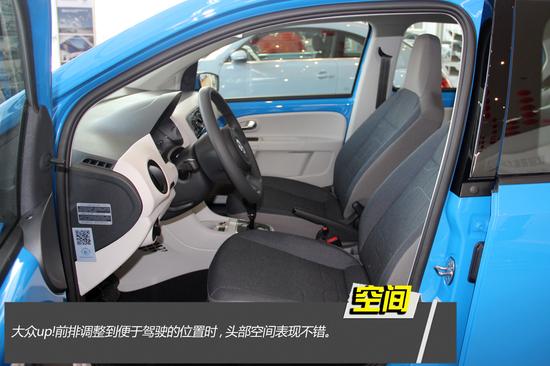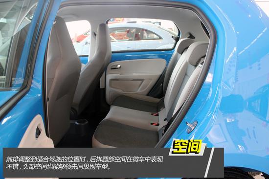 大众up!前排调整到便于驾驶的位置时,头部空间表现不错。前排调整到适合驾驶的位置时,后排腿部空间在微车中表现不错,头部空间也能够领先同级别车型。