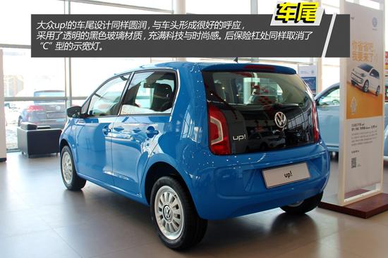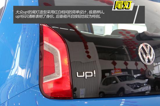 大众up!的尾灯造型采用红白相间的简单设计,极易辨认。up!标识清晰表明了身份。后备箱开启按钮也较为特别。