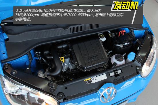 大众up!汽油版采用1.0升自然吸气3缸发动机,最大马力75匹/6200rpm,峰值扭矩95牛米/3000-4300rpm,与市面上的微型车参数相近。搭配5挡AMT序列式变速器。