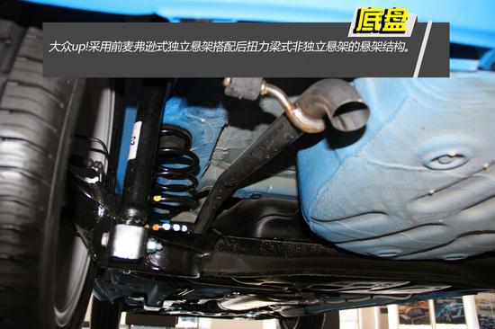 大众up!采用前麦弗逊式独立悬架搭配后扭力梁式非独立悬架的悬架结构。